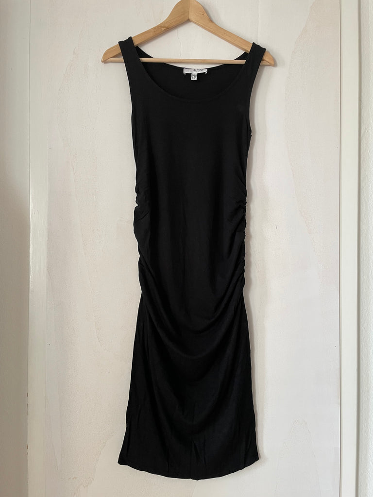 Enganliegendes, schwarzes Trägerkleid.